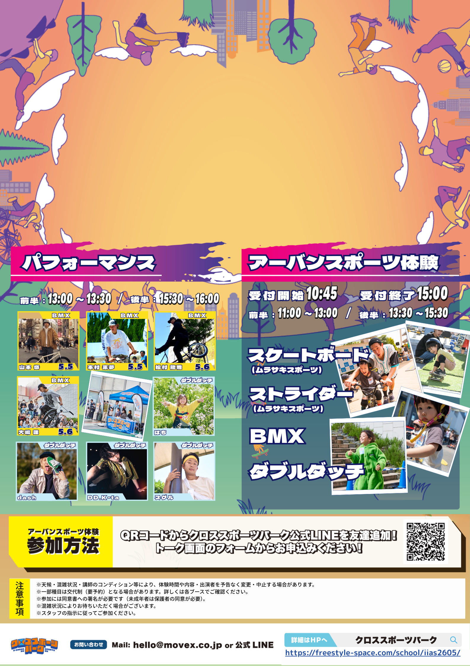※一部の種目は各ブースでの 時間枠の予約も必須です。