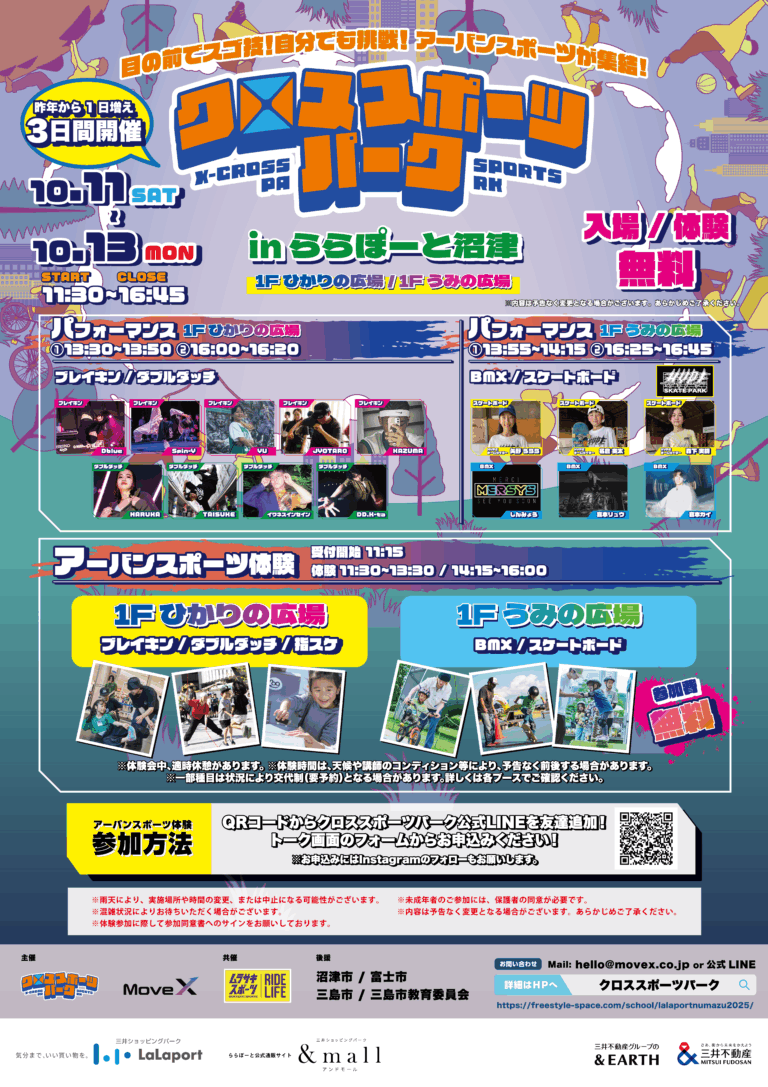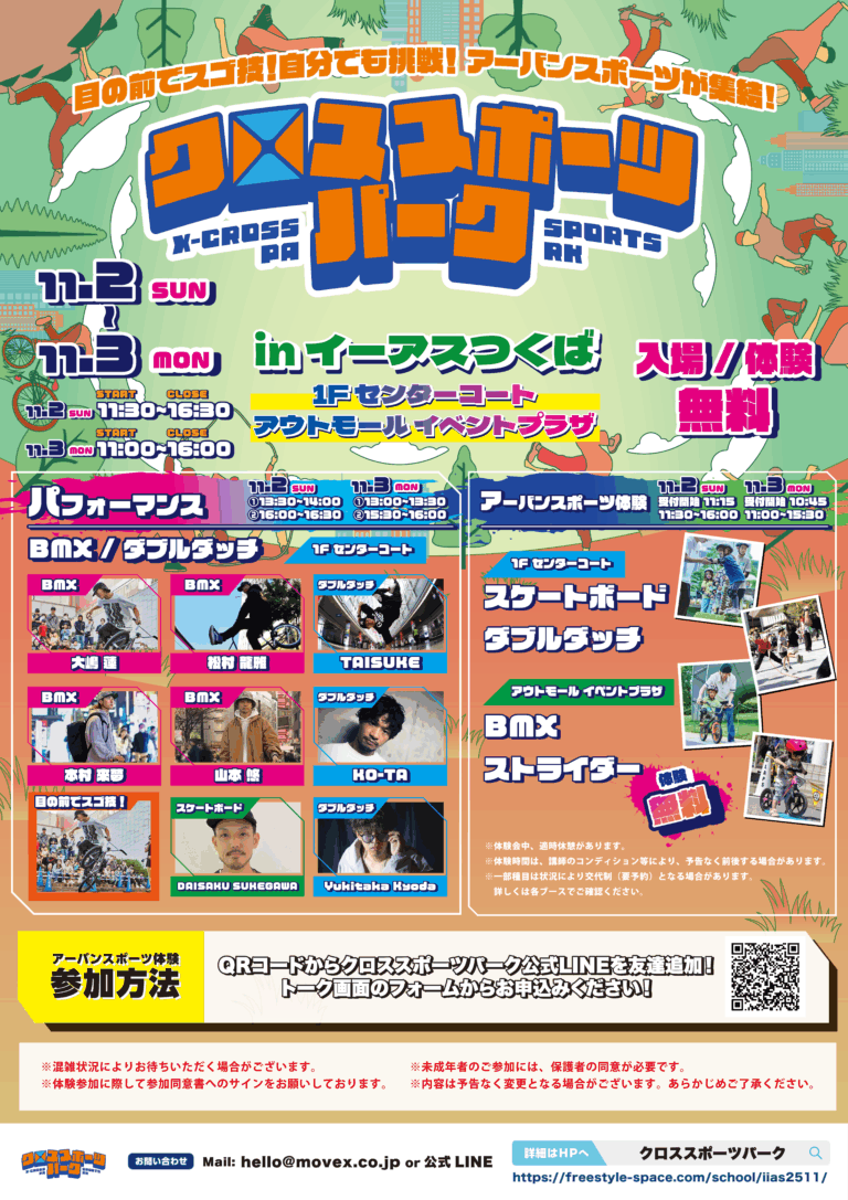 全国・場所を選ばず、様々なアーバンスポーツが実際に体験でき、プロのパフォーマンスが目の前で見れるスポーツイベント。