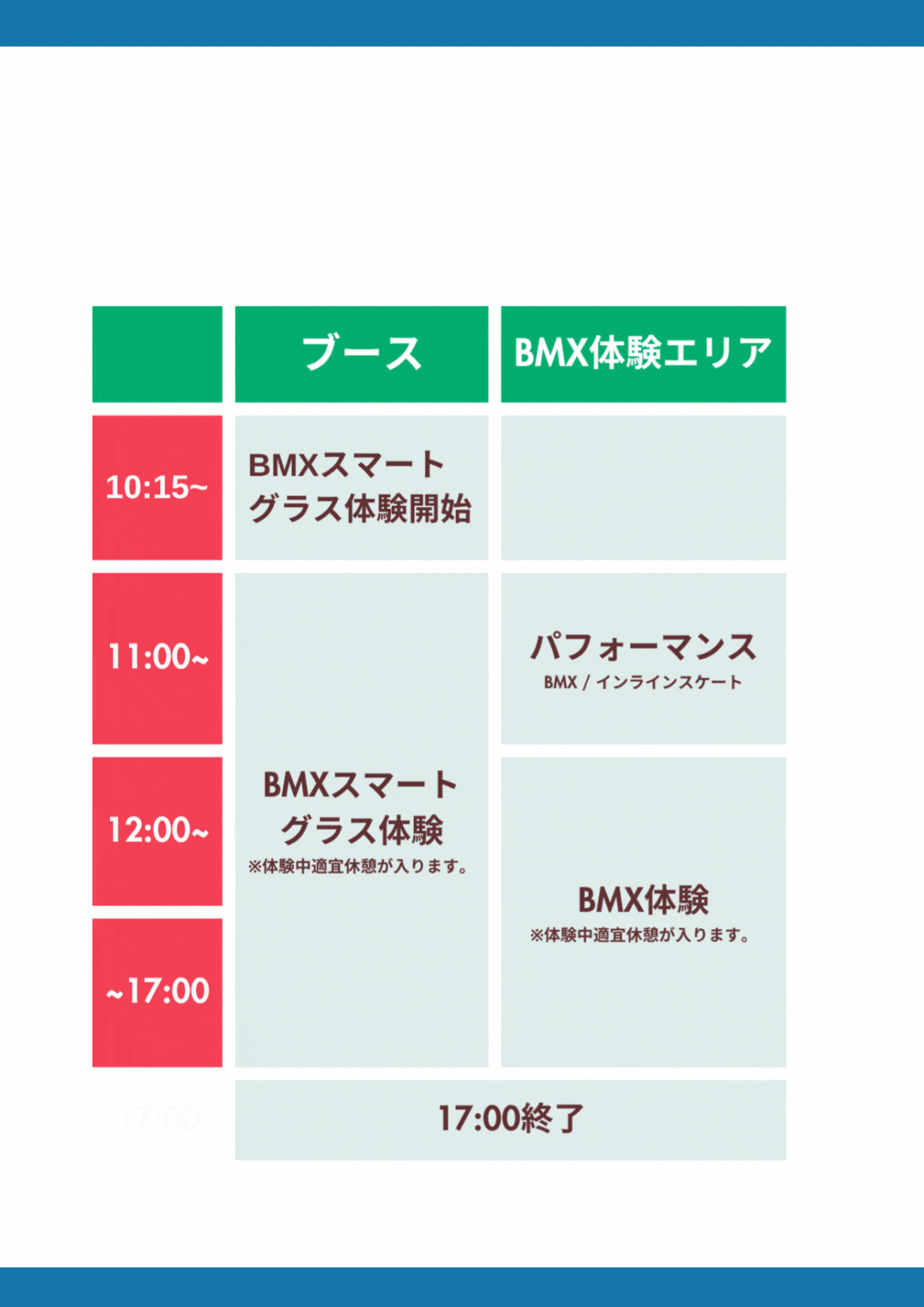※なお、スマートグラスBMX体験は予定通り実施いたします。