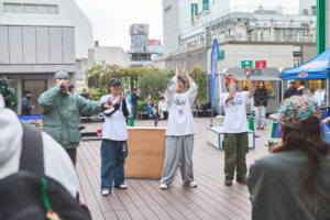 A館3階GREENING広場をワンストップで活用したことで回遊性と滞在時間を確保し、2日目の雨天時においても、迅速な判断と会場および周辺環境のポテンシャルを活かしながら、最終的にパフォーマンスまで実施することができた。