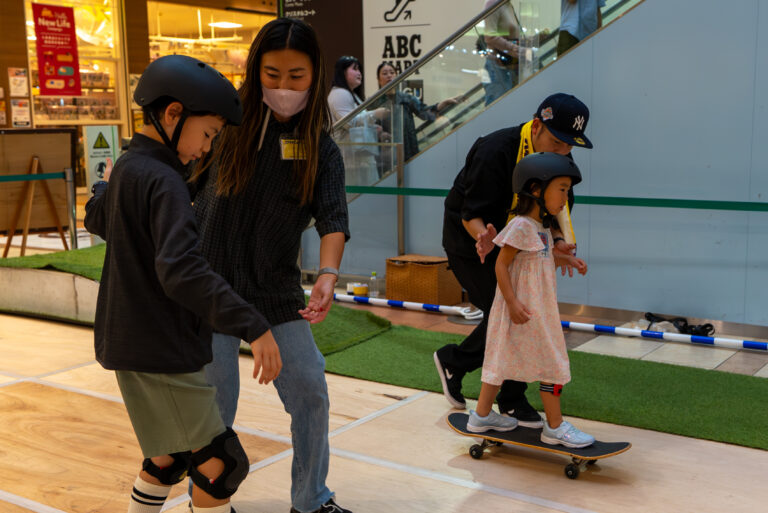 たまたま他の用でららぽーとに寄ったら、イベントをしており参加させて頂きました。ミニサイズのスケボーは家にあるものの、(子供が幼少期に興味を持ち購入)家族で誰もスケボー経験者がいなく、数回やってやらないままでした。今回はムラサキスポーツの方が優しく教えて頂いたお陰で短時間で成長し、こうやって教えれば良いのか。と親が勉強になりました。子供たちも次の休みに練習したい!と言っており、眠っていたスケボーが活躍しそうです。中学生の長男には小さいと思うので、ムラサキスポーツさんで購入しようと思っています。一番はムラサキスポーツの方がすごく好印象でした。ありがとうございます。