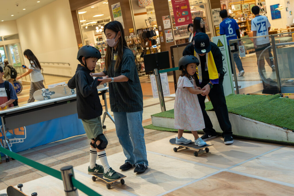 たまたま他の用でららぽーとに寄ったら、イベントをしており参加させて頂きました。ミニサイズのスケボーは家にあるものの、(子供が幼少期に興味を持ち購入)家族で誰もスケボー経験者がいなく、数回やってやらないままでした。今回はムラサキスポーツの方が優しく教えて頂いたお陰で短時間で成長し、こうやって教えれば良いのか。と親が勉強になりました。子供たちも次の休みに練習したい!と言っており、眠っていたスケボーが活躍しそうです。中学生の長男には小さいと思うので、ムラサキスポーツさんで購入しようと思っています。一番はムラサキスポーツの方がすごく好印象でした。ありがとうございます。