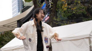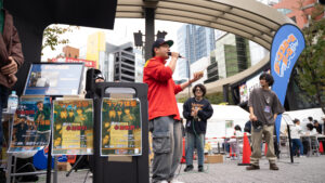2. ラップ体験:人だかりができるほどの大フィーバー!